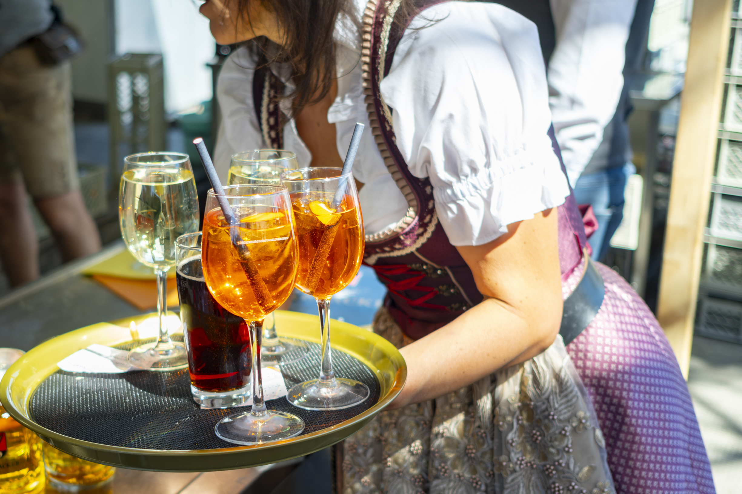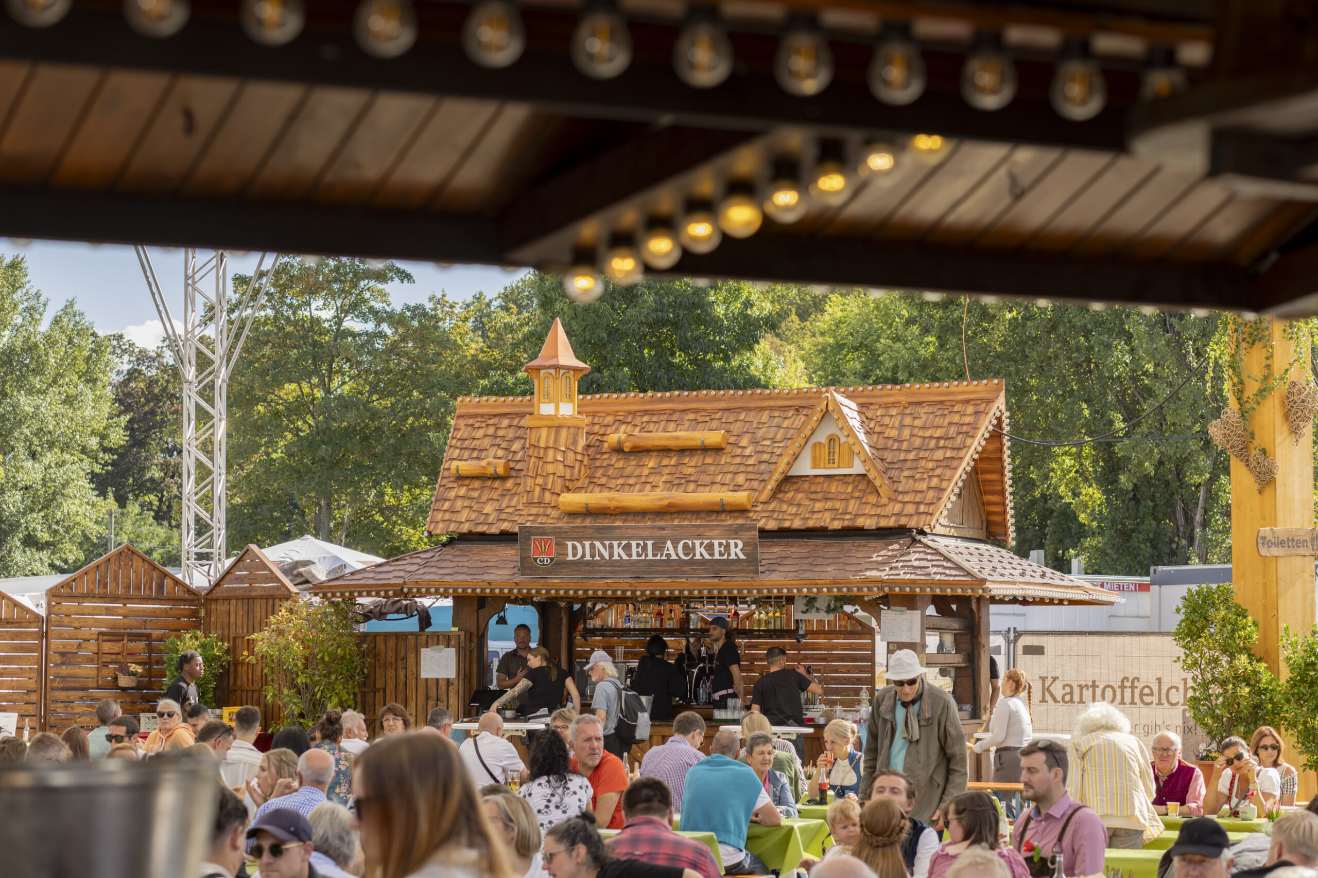 In unserem überdachten Biergarten sorgt unser Wasenhimmel-Service-Team für eine Wohlfühlatmosphäre und serviert regionale Speisen und Getränke!